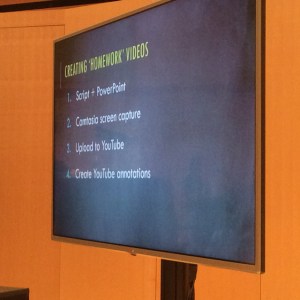 Carolyn vertelde vooraf aan de studenten dat ze ging werken met flipped classroom. En dat dit betekende dat ze vooraf tijd moesten vrijmaken voor het bekijken van de video’s. Elke week kregen de studenten een mail met links naar de video’s die ze moesten bekijken. Ze testte de studenten vooraf en achteraf zodat ze een beter beeld kreeg van wat de studenten hadden geleerd.